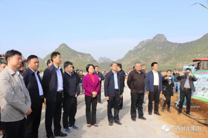 2020年12月2日“2020年全國糖料高質(zhì)量發(fā)展推進(jìn)落實(shí)會(huì)”在甘化集團(tuán)貴港片區(qū)顯滕“雙高”基地開展現(xiàn)場觀摩甘蔗生產(chǎn)全程機(jī)械化作業(yè)。農(nóng)業(yè)農(nóng)村部種植業(yè)管理司、貴港市委、覃塘區(qū)委等領(lǐng)導(dǎo)到現(xiàn)場觀摩,集團(tuán)董事長林寧陪同觀摩并介紹雙高基地建設(shè)成效及新榨季生產(chǎn)情況。