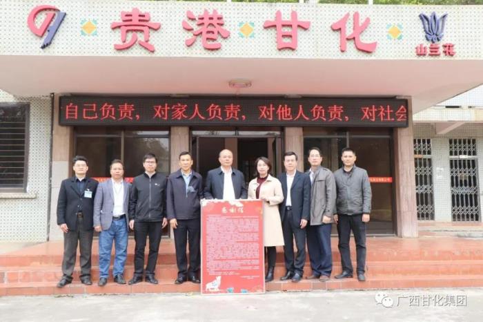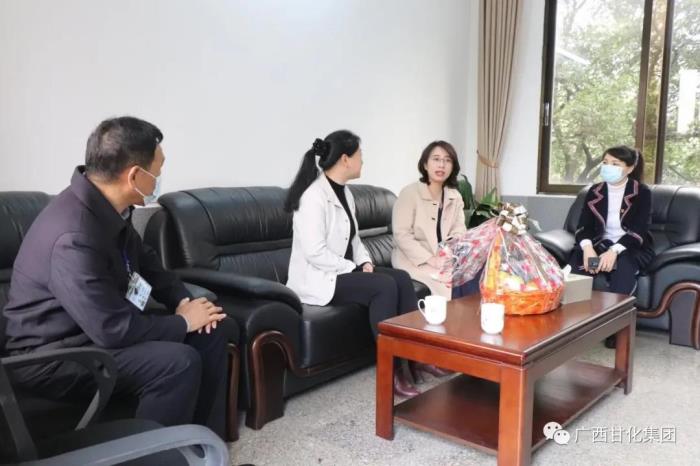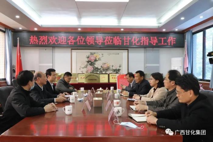2021年1月26日,貴港市政協(xié)副主席劉東慶、市工信局副局長鄧塘建一行代表市委、市政府送來感謝信,向廣西貴港甘化股份有限公司及全體員工致以誠摯的問候和新年祝福;同日貴港市委統(tǒng)戰(zhàn)部常務副部長孫曉春一行代表市委人才工作小組到貴港甘化進行走訪慰問活動。期間,劉東慶副主席、孫曉春副部長分別與集團常務副總裁曹林希、貴港甘化總經(jīng)理黃敏昭、農(nóng)務副總劉曉東、人事總監(jiān)甘春鋒、總經(jīng)理助理梁衛(wèi)福進行親切交流。