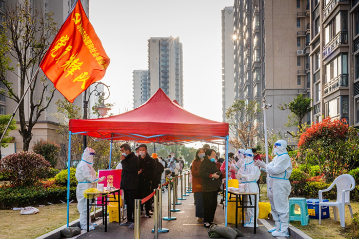 一支黨員先鋒隊,全力打贏疫情防控阻擊戰(zhàn) 疫情就是命令。為有序開展園區(qū)大規(guī)模區(qū)域核酸檢測工作,園區(qū)機關(guān)、企事業(yè)單位黨員干部積極響應(yīng)黨工委號召,火速集結(jié),爭分奪秒開赴核酸檢測預(yù)定點位。從凌晨的物資準(zhǔn)備、早上5點的核酸檢測,到夜間的“掃樓行動”,忙碌地穿梭于樓棟之間的黨員突擊隊員,堅決落實好“不落一戶,不漏一人”的防控要求。共產(chǎn)黨員、園區(qū)安委辦綜合協(xié)調(diào)與巡查督查處副處長朱婷婷說:“在這個疫情防控的緊要時期,作為一名共產(chǎn)黨員,拉得出、打得響,是我對自己最基本的要求。”在履行防控職責(zé)同時,黨員志愿者和醫(yī)護人員跨前一步,為社區(qū)獨居老人、行動不便老人提供送檢上門等貼心服務(wù),受到群眾廣泛點贊。