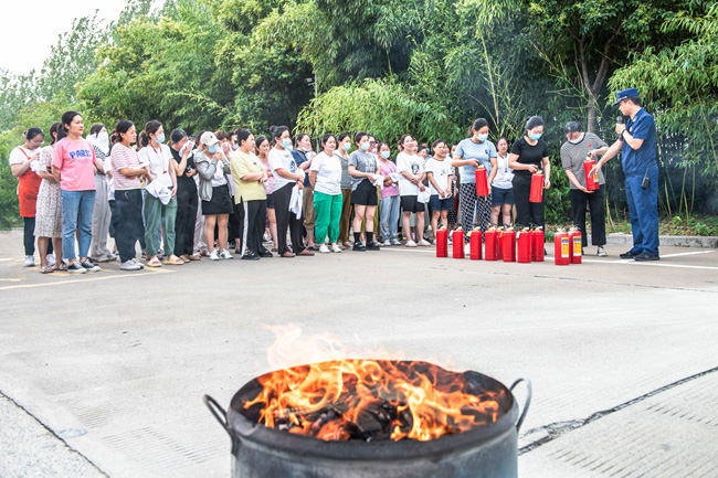 最后大家手持干粉滅火器對準火源根部由遠及近進行掃射撲滅火源的實際操作,熟練掌握了滅火器的使用方法,提高了員工撲救初期火災的能力。