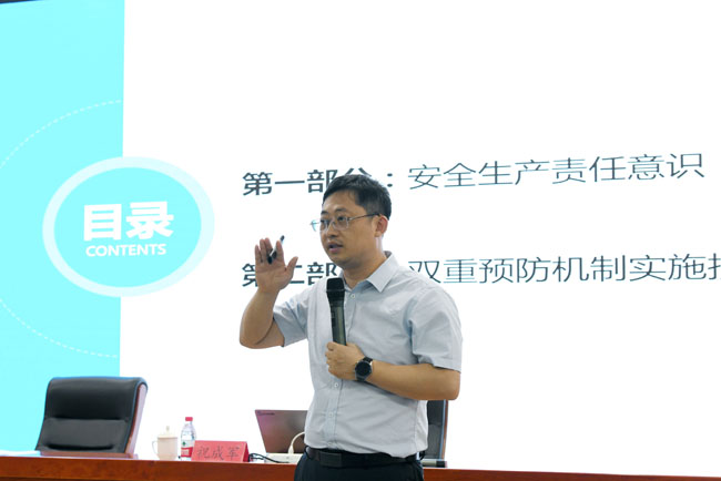 本次培訓(xùn)邀請(qǐng)國(guó)家注冊(cè)安全工程師祝成軍進(jìn)行授課。培訓(xùn)會(huì)上,祝成軍圍繞開(kāi)展安全生產(chǎn)雙重預(yù)防體系建設(shè)工作的意義,相關(guān)法律法規(guī)、標(biāo)準(zhǔn)等內(nèi)容進(jìn)行了詳細(xì)講解,并結(jié)合具體事故案例,對(duì)如何理解雙重預(yù)防體系、如何劃分作業(yè)單元、如何進(jìn)行風(fēng)險(xiǎn)辨識(shí)與評(píng)價(jià)等內(nèi)容進(jìn)行了專門的講解。