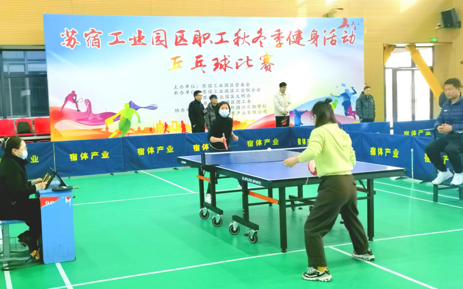 乒乓球比賽現(xiàn)場高潮迭起,選手們圍著乒乓球臺揮動球拍,全力拼搏??蹥ⅰ⒗?、削球……參賽選手揮灑汗水,比拼球技,圍觀的職工同事加油打氣,時不時傳出一陣陣歡樂的笑聲。