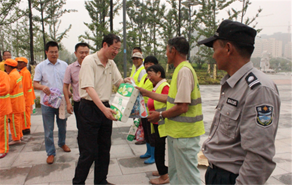 園區(qū)城管局有關(guān)負(fù)責(zé)人陪同慰問(wèn),并為環(huán)衛(wèi)工人分發(fā)了防暑降溫用品。